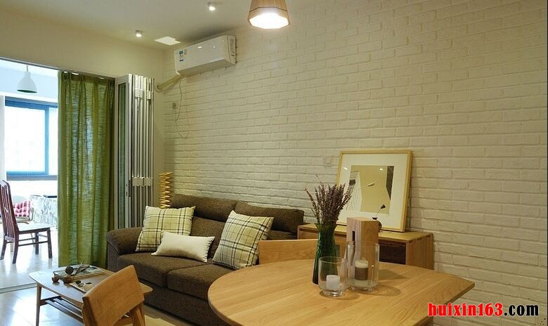 客厅中的装饰比较具有自然气息,沙发背景墙的装饰比较具有仿古特色,白漆砖墙的设计自然会使人们眼前一亮,同时也可以带给人们一种亲切感,一款深棕色的棉麻布艺沙发靠墙而放,上面还搭配了一款白色带有格子图案的布艺抱枕,在舒适之余又可以带给人们一种清新感,这样可以使在外忙碌一天的人们回到家中感到身心放松,从而可以更好的享受休息时光,,一侧装饰比较自然的餐厅,可以带给人们布艺样的享受,原木材质的墙壁以及吊顶,比较具有设计感,而且原木材质也更可以带给人们一种大自然的清新,房屋不需要过多的修饰,就可以将设计感全部都展现出来,卧室的设计主要是以舒适为主,素雅的色彩搭配上柔软的床饰,这便是理想中家的感觉。