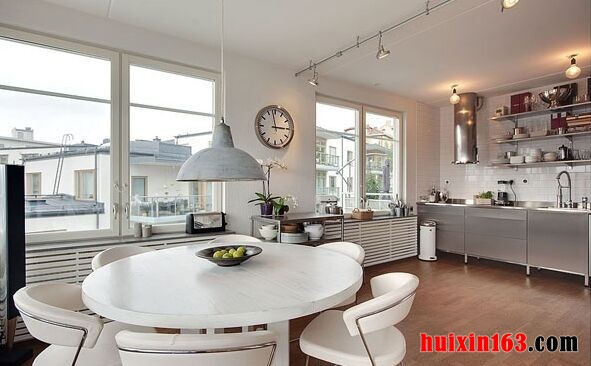 本套房屋装饰的主色彩是以白色为主,客厅中沙发与电视的距离较近,所以设计师将电视镶嵌在了背景墙之内,这样的设计可以延伸背景墙与沙发的距离,从而保护人们的眼睛,纯白色的布艺沙发质地非常柔软,搭配上灰色以及白色的小巧抱枕,更是将舒适的柔软感全部都展现了出来,一款毛毯搭配在沙发之上,更是为客厅空间增添了无限的温馨之意,卧室的设计比较大气,宽大的双人床上搭配了柔软舒适的床饰,可以带给人们一种意想不到的舒适感,白色的床被也更是与房屋的装饰主题相呼应,厨房中的设计比较简单,但是装饰的布局比较紧凑,不锈钢材质的橱柜反射了灯光的光线,使空间显得更加闪亮,搭配上白色的墙壁砖则显得更加干净。